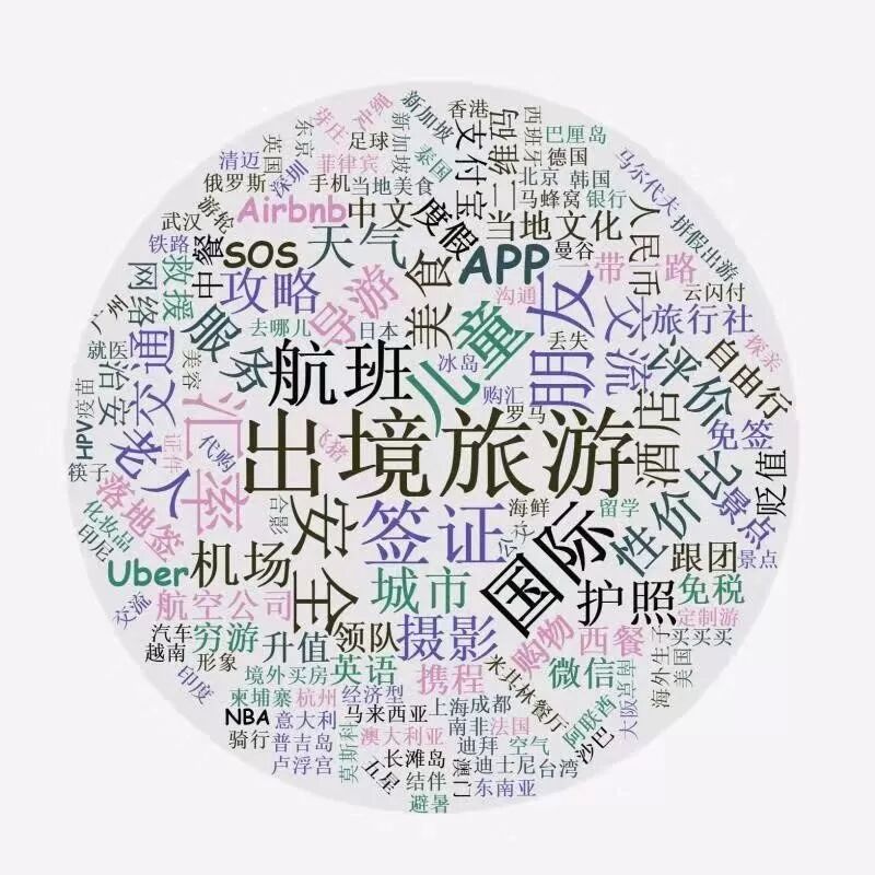 图2 基于百度的出境旅游词云分析(作图:谢仲文)